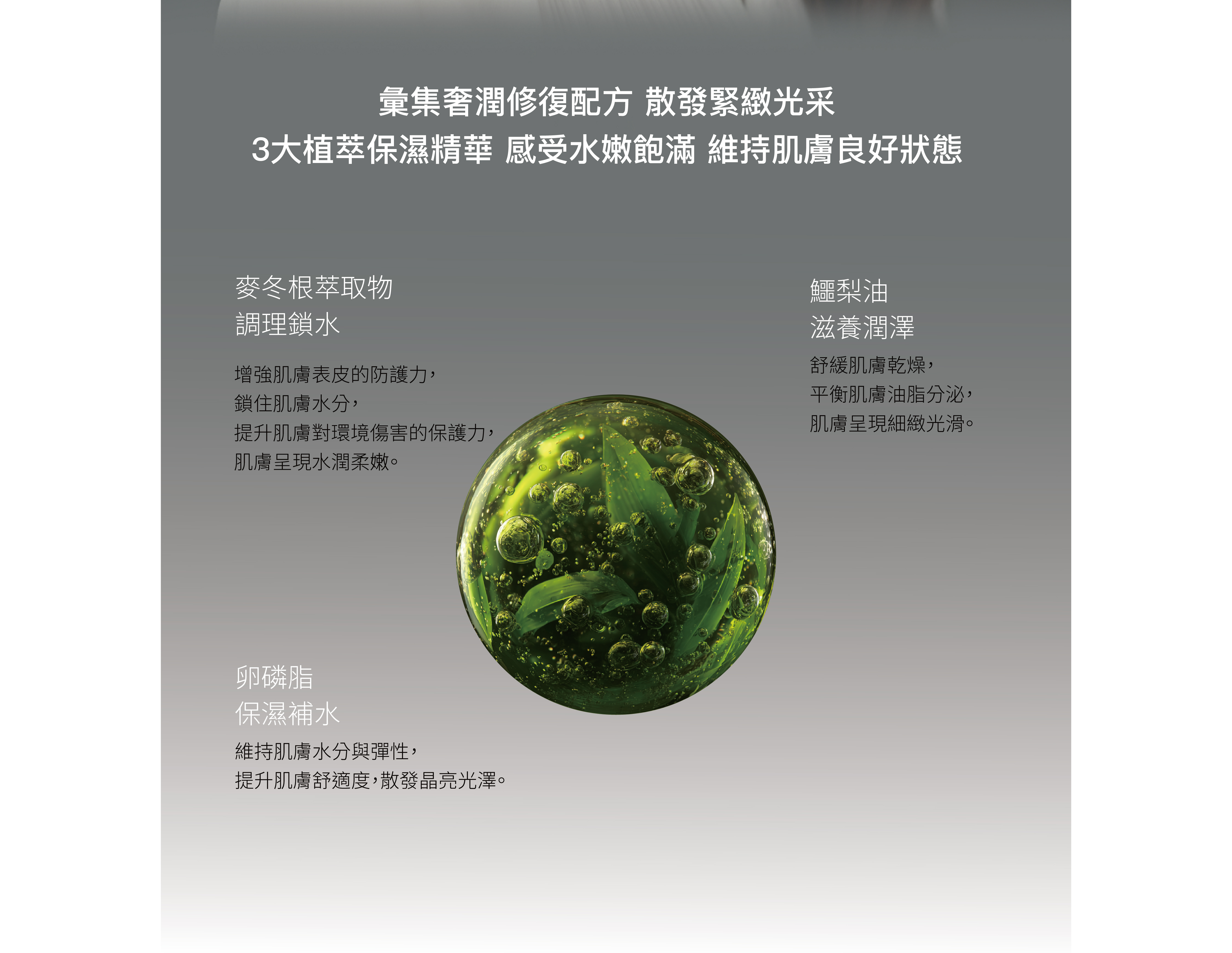 潤澤滋養並溫和修護,使肌膚散發迷人光采!
