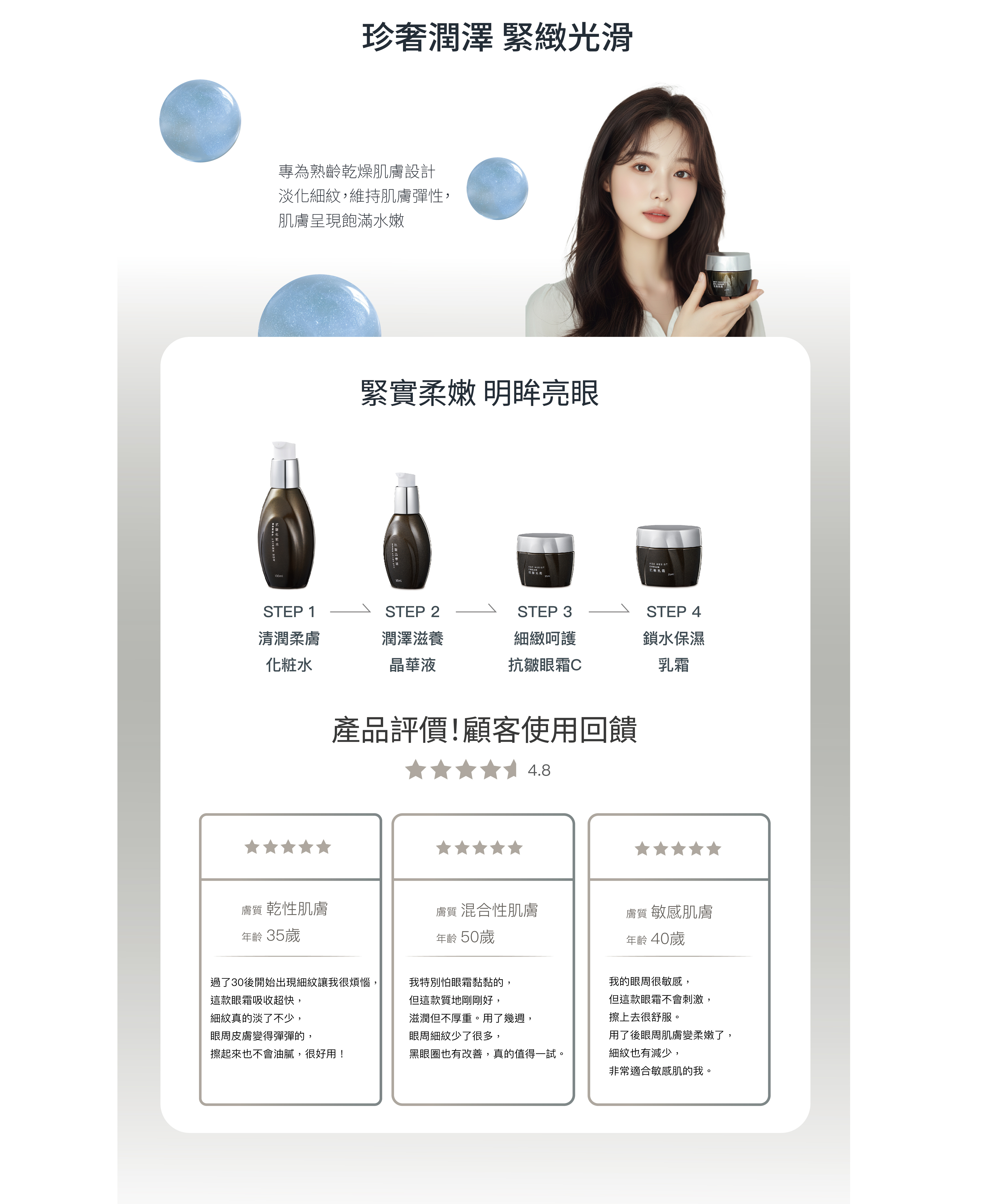 賦活肌膚柔軟水嫩,雙眸呈現迷人光采!