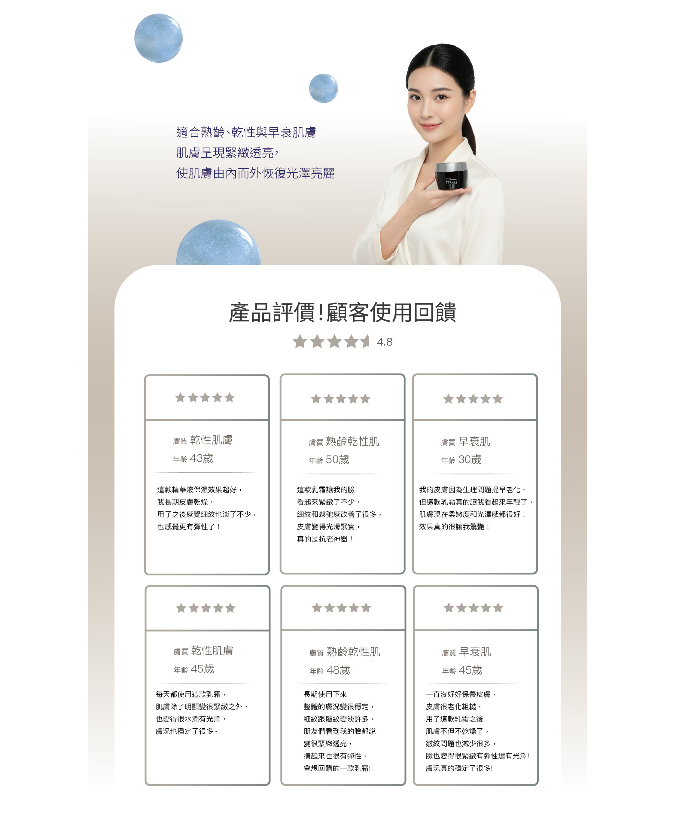 潤澤滋養,使肌膚散發自然光采與緊緻飽滿。