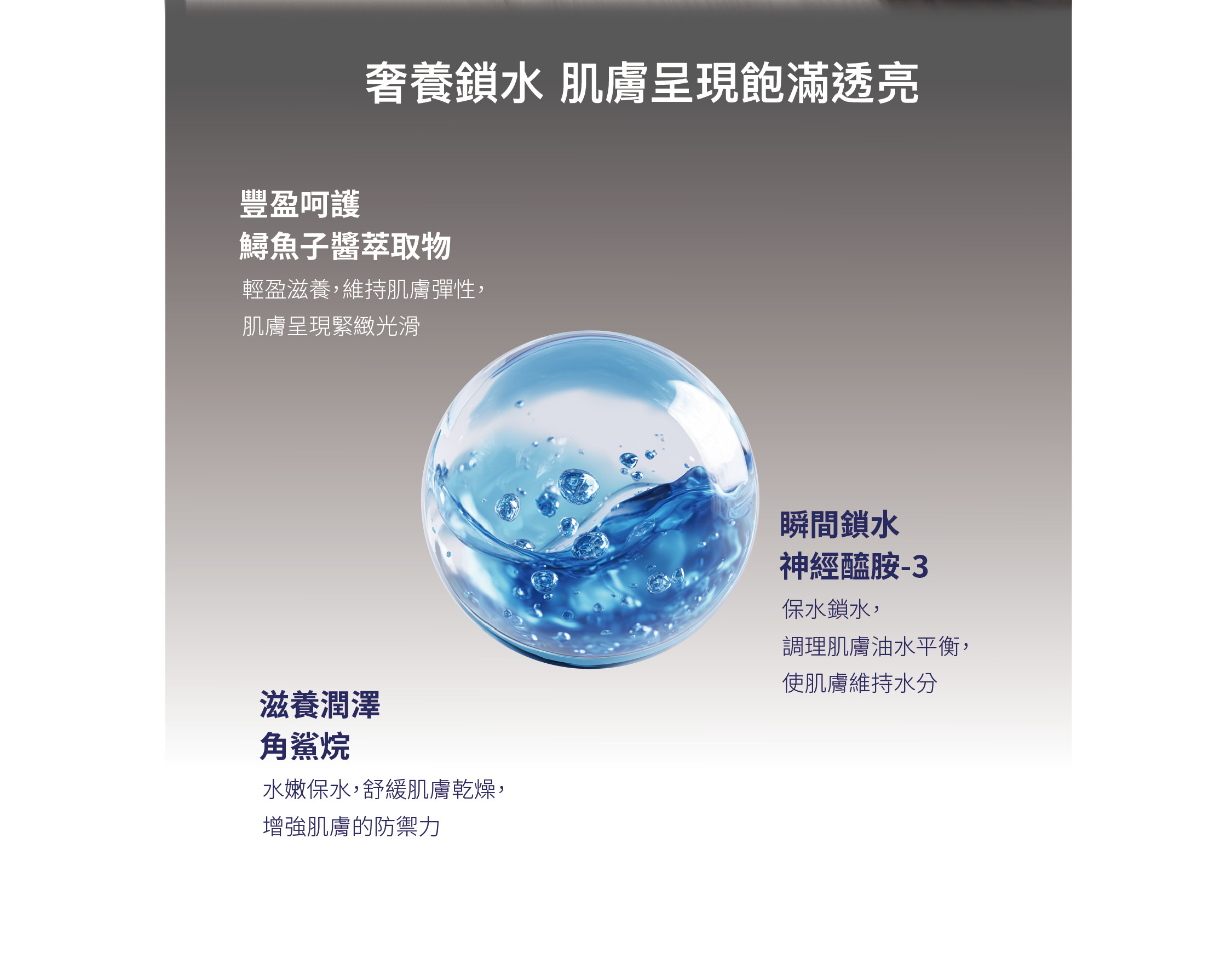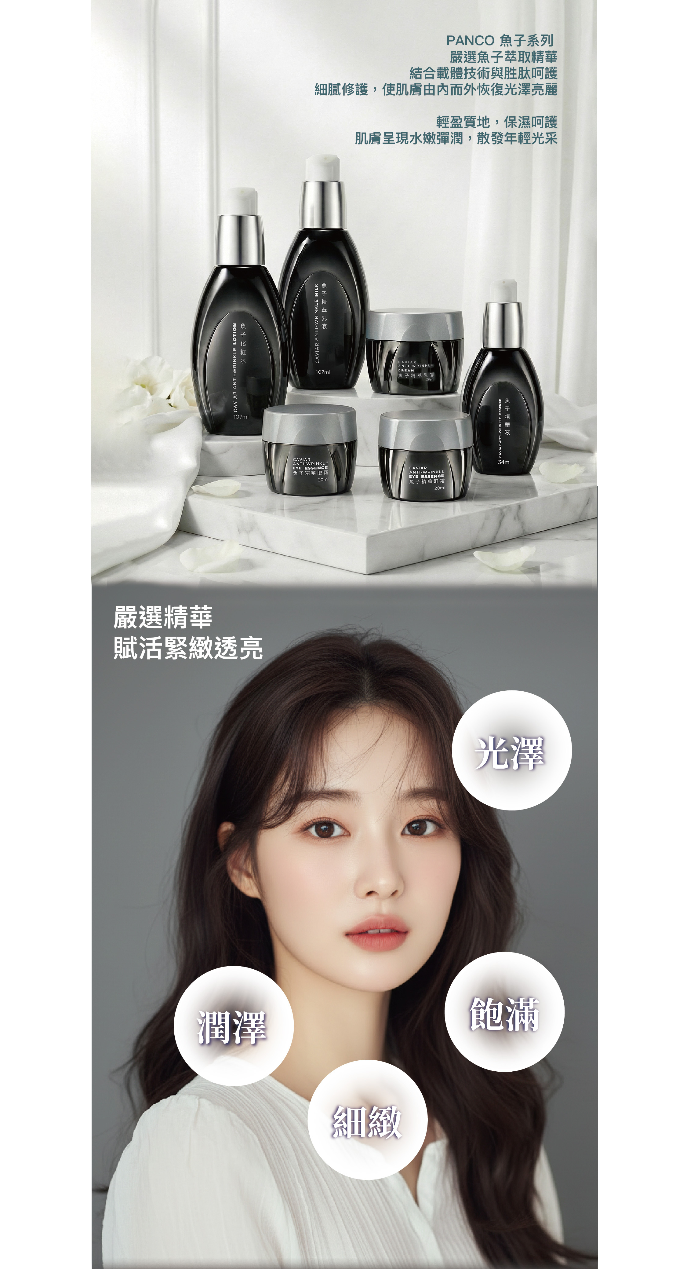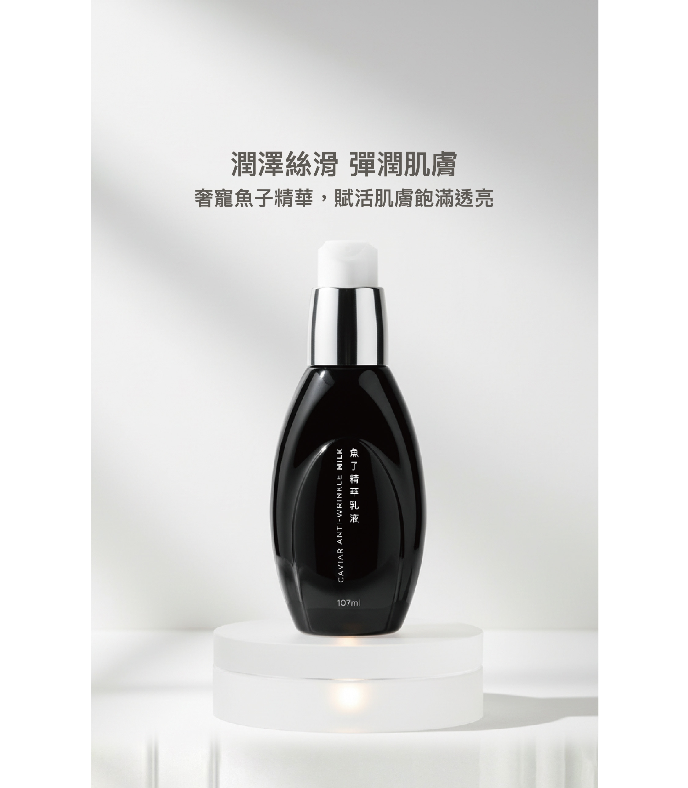 輕盈絲滑乳液質地,臻萃魚子精華,