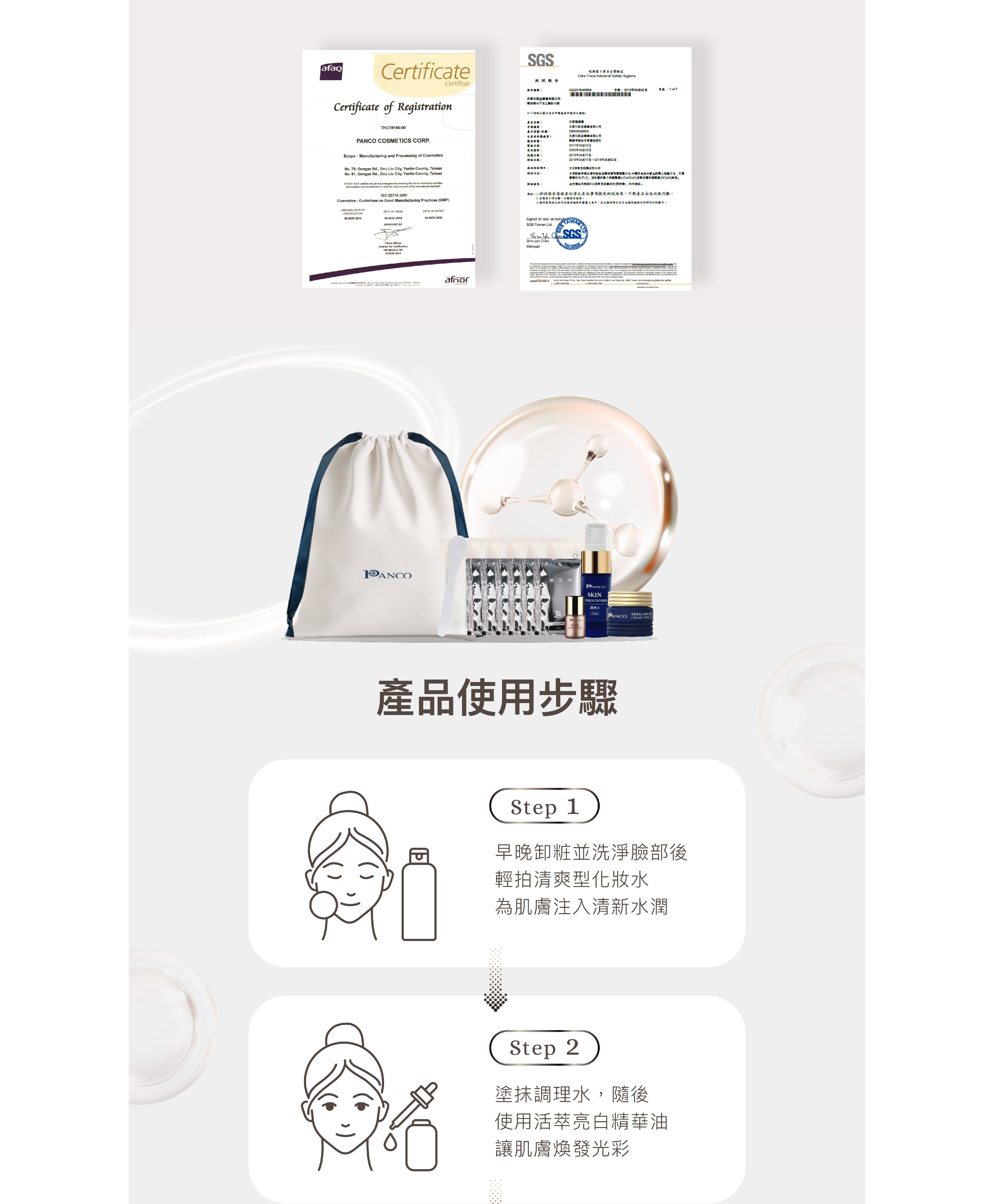 ꜱᴛᴇᴘ 2 ❘ 塗抹調理水,隨後使用活萃亮白精華油