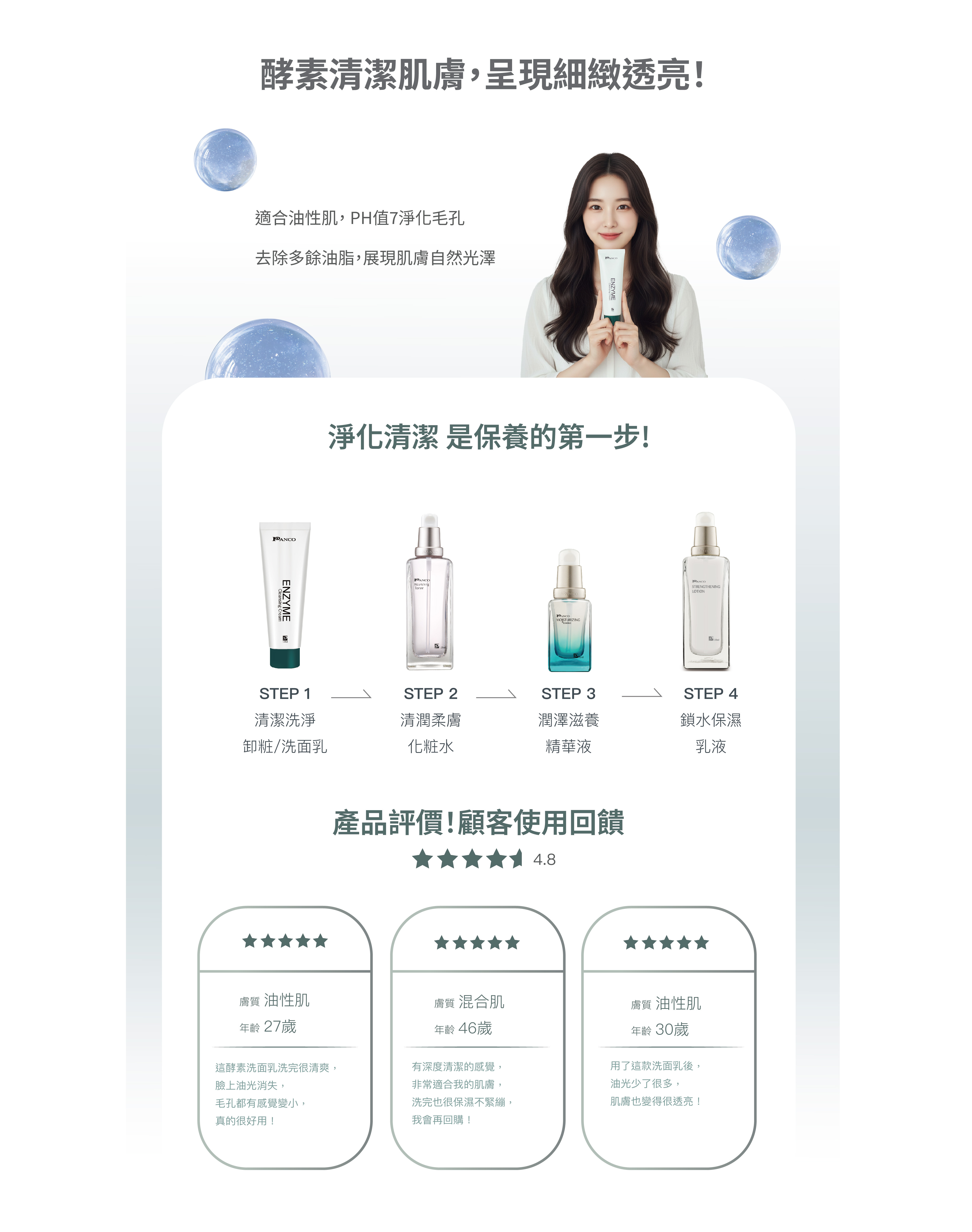 去除多餘油脂與髒污,肌膚細緻透亮,散發自然光采。