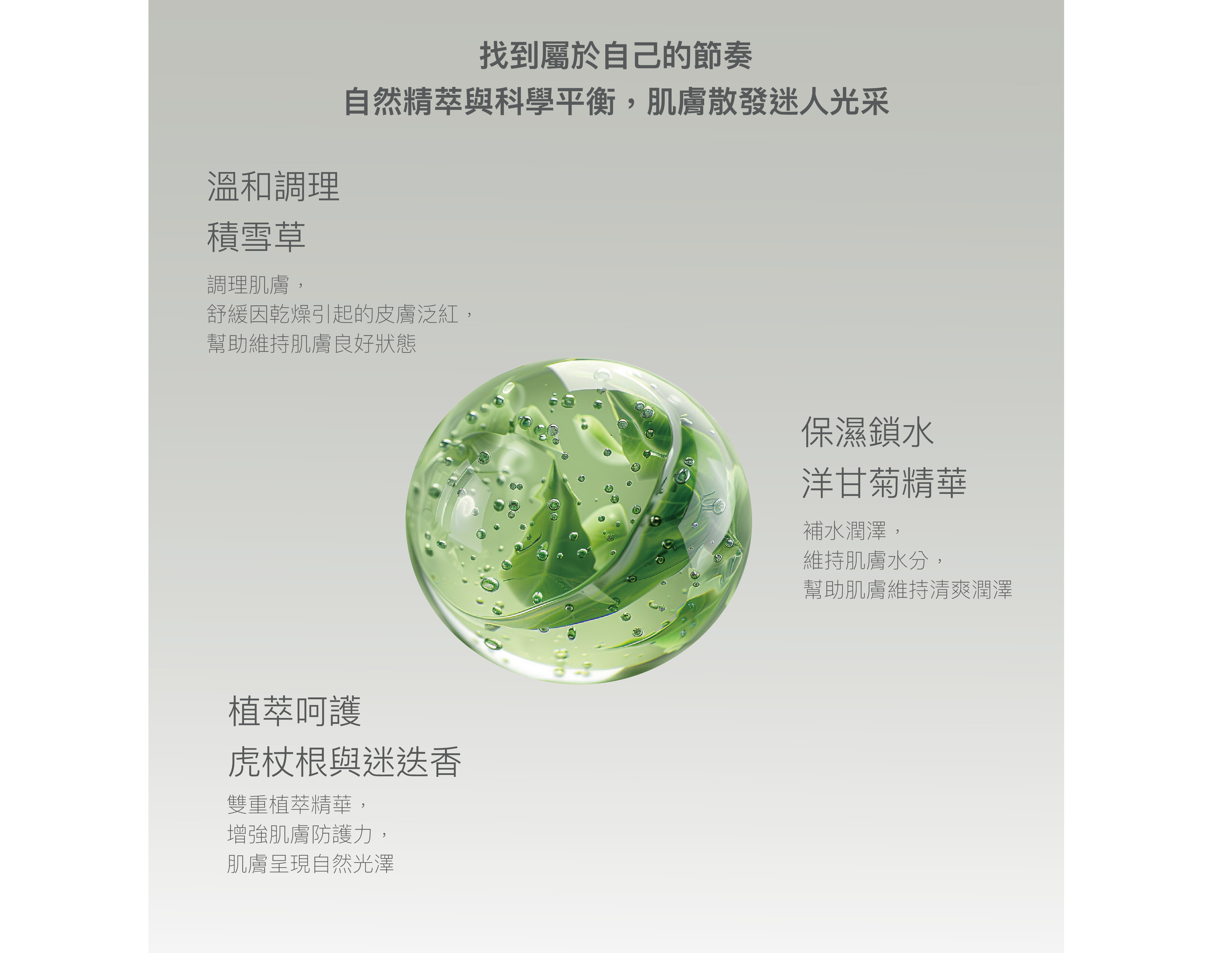 感受肌膚間的水嫩透亮,散發自然迷人光采。
