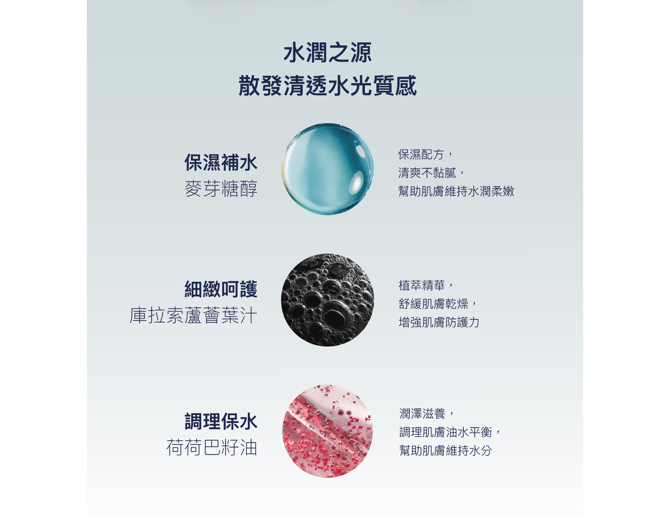 採用9分水1分油的理想比例,潤澤補水鎖水,