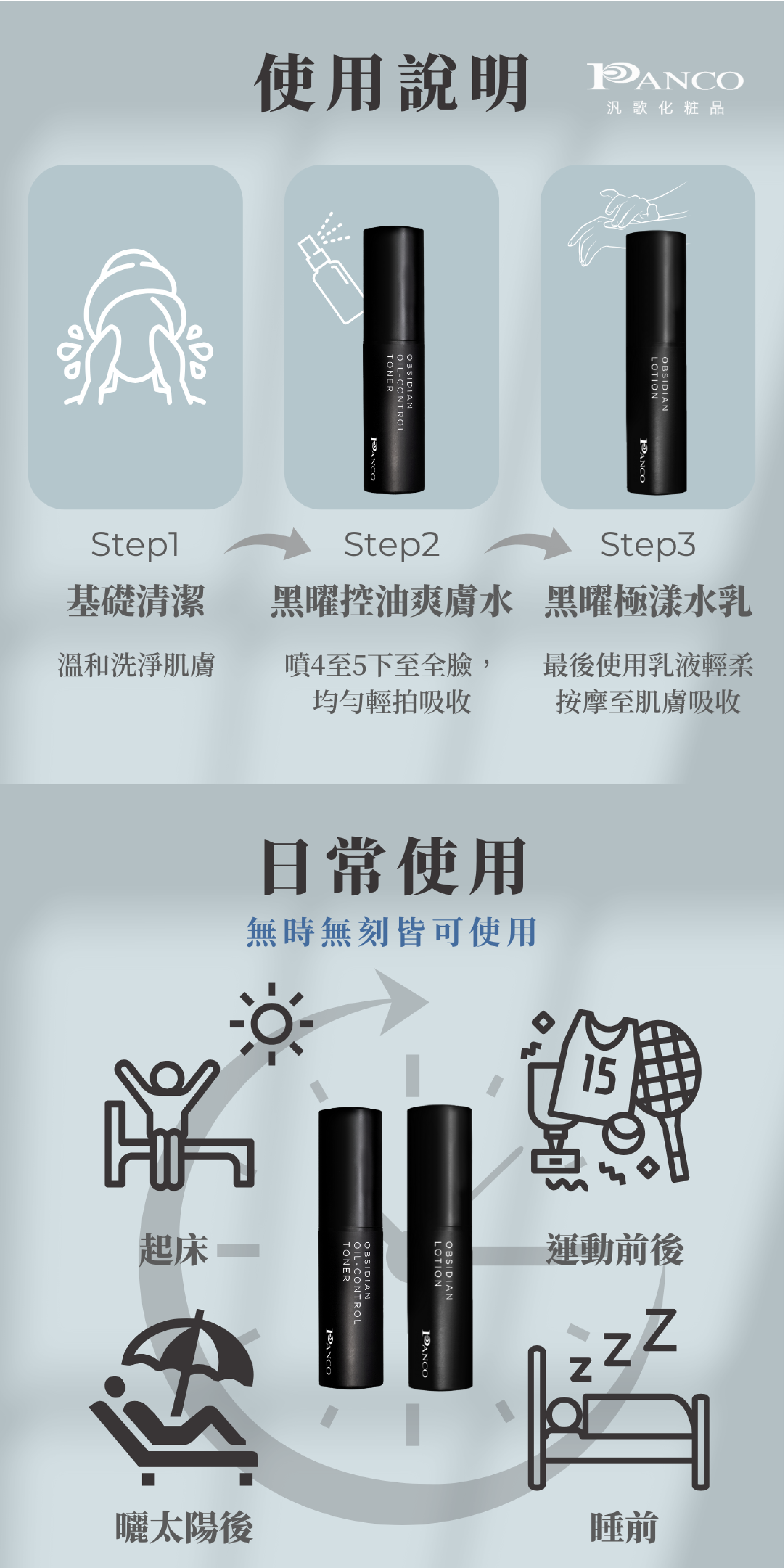 ꜱᴛᴇᴘ 1 ❘ 早晚卸粧洗臉後,將黑曜控油爽膚水噴4至5下至全臉,均勻輕拍至吸收