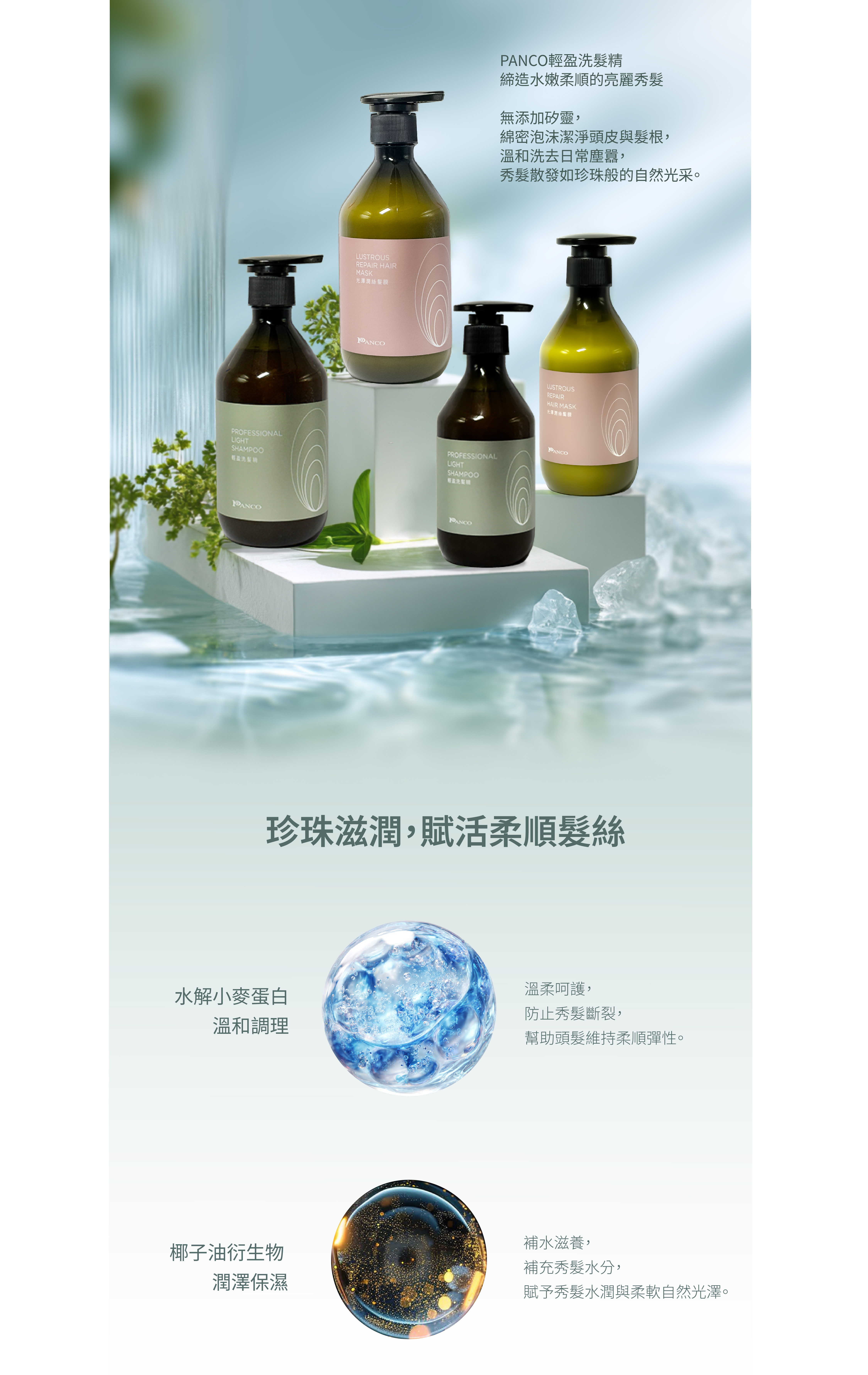 綿密泡沫溫和潔淨,洗後秀髮蓬鬆柔順,散發輕盈光澤