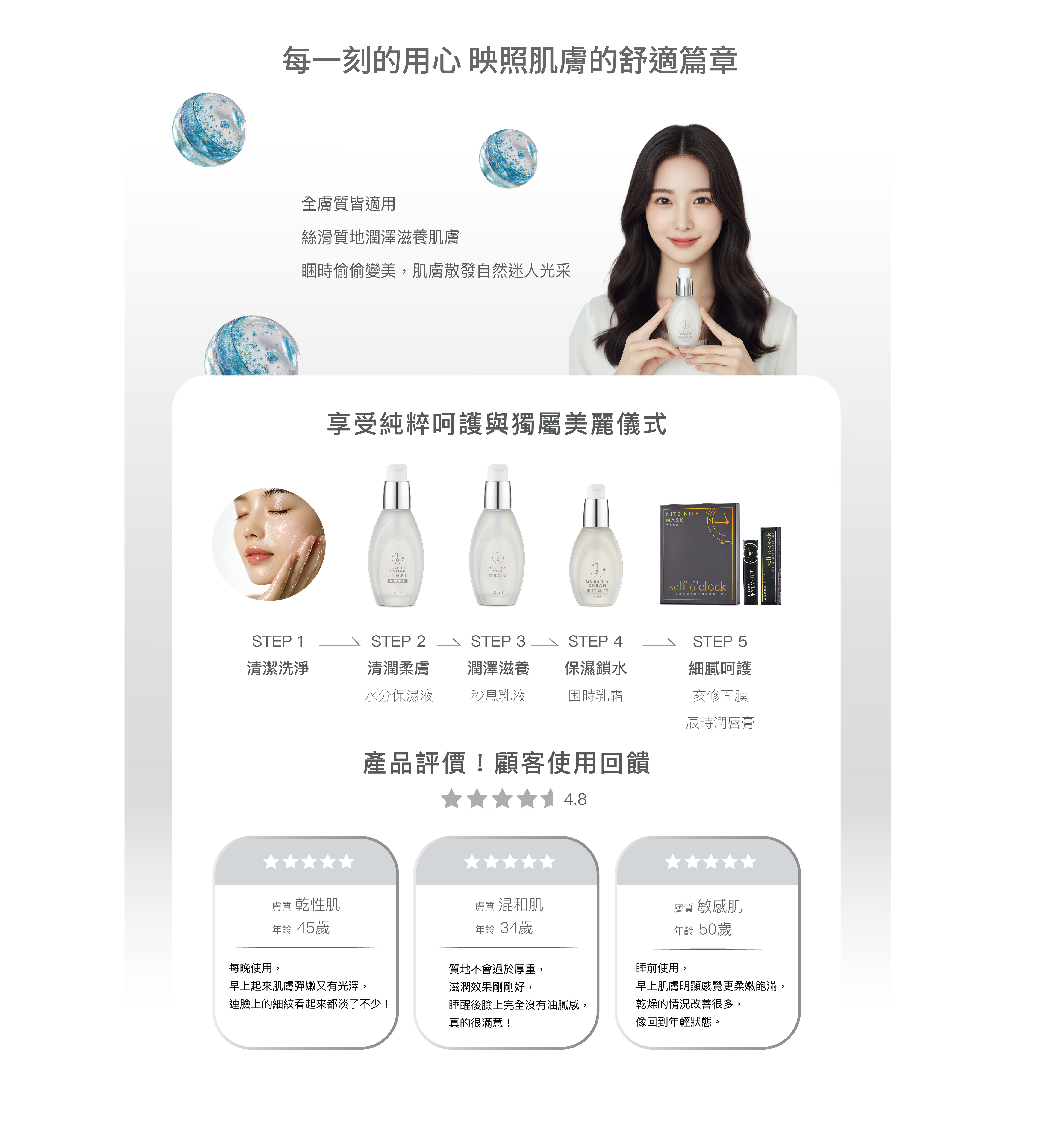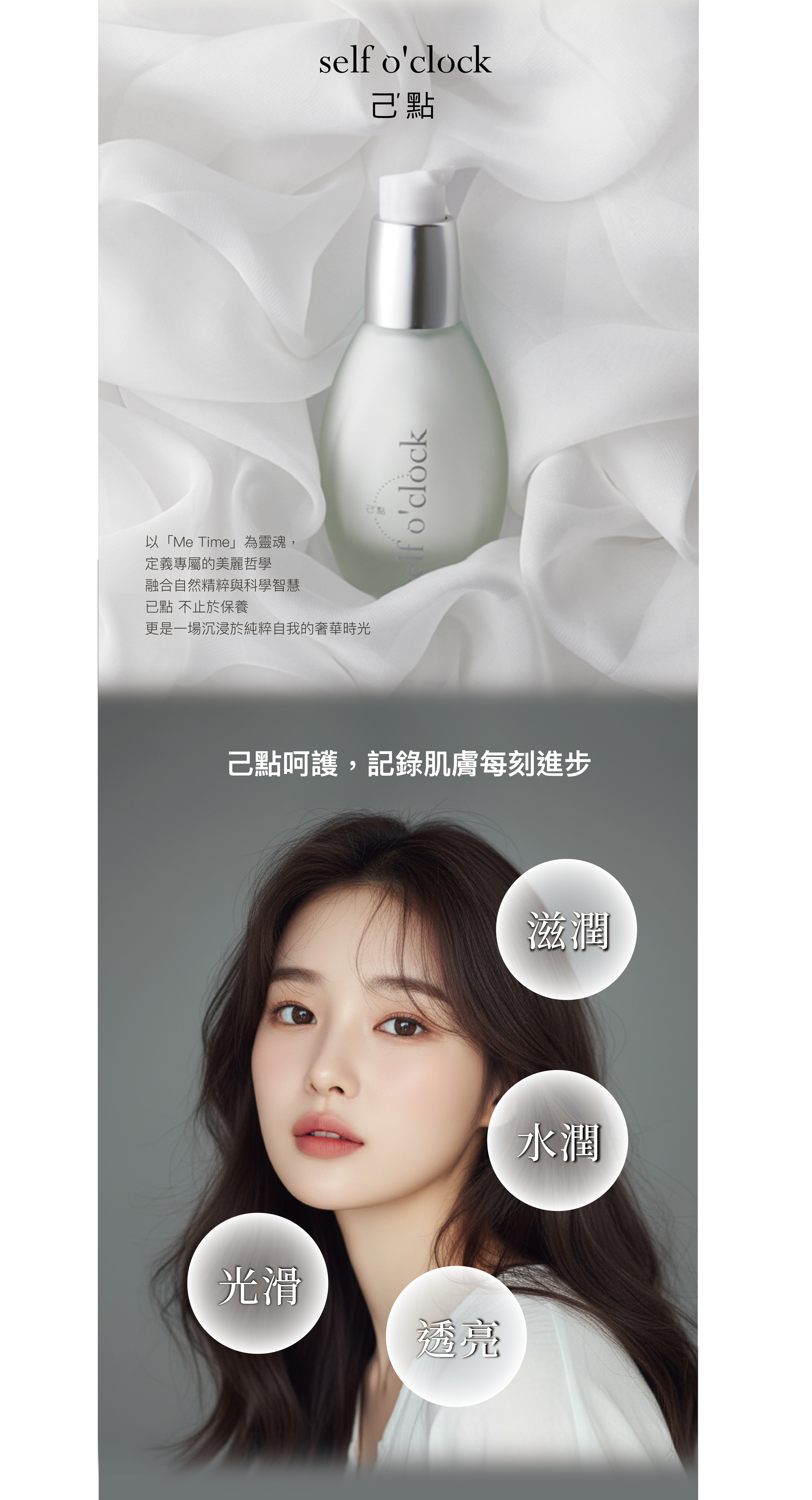 水嫩滋養,肌膚散發細緻光澤與柔嫩質感。