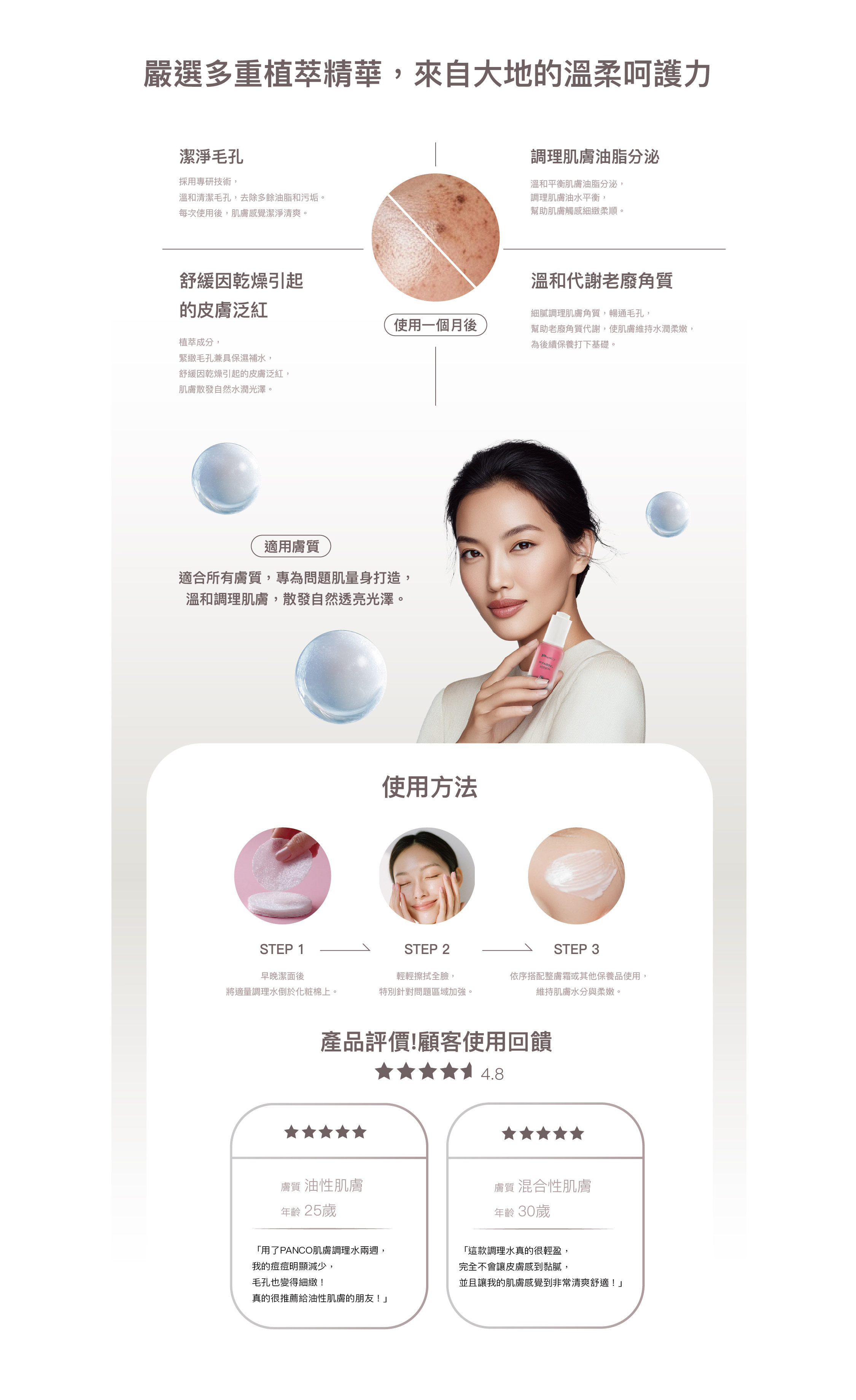 溫和調理肌膚,幫助維持肌膚良好狀態。